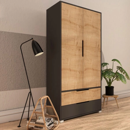 Ντουλάπα ρούχων δίφυλλη Forx μελαμίνης oak-ανθρακί 90x45x180εκ