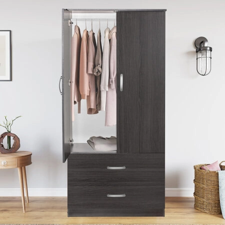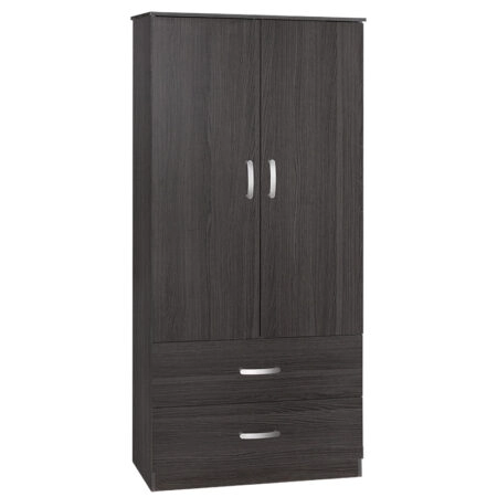 Ντουλάπα ρούχων δίφυλλη Zelia με 2 συρτάρια χρώμα wenge 79x42x180εκ