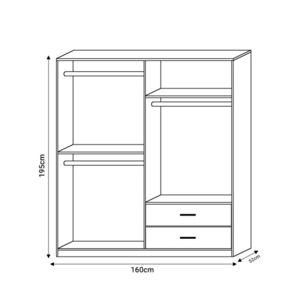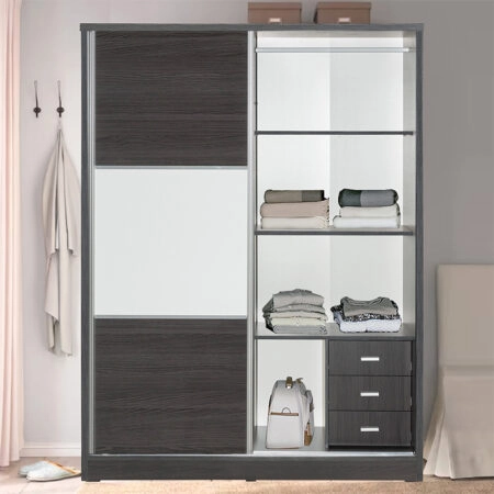 Ντουλάπα ρούχων Chase δίφυλλη με συρόμενες πόρτες χρώμα wenge 152.5×56.5×185εκ