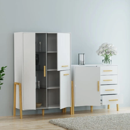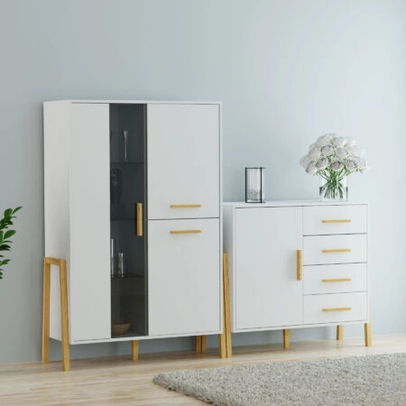 Βιτρίνα Santes Χρυσό Δρυς-Λευκό 90x42x134.50cm