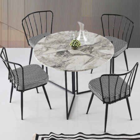 Yaprak Efes Τραπέζι Αναδιπλούμενο MDF με Μεταλλικά Πόδια Άσπρο/Μαύρο (100x100x73)cm