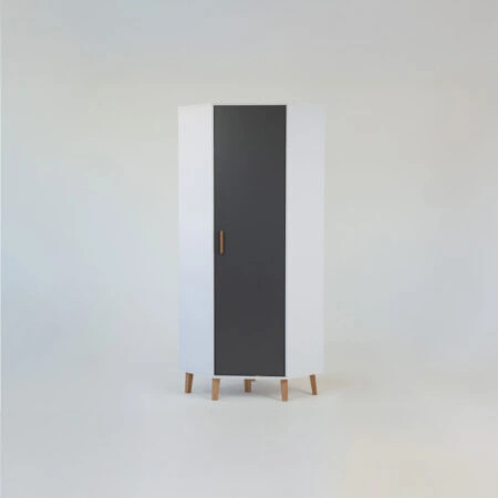 Γωνιακή Ντουλάπα Timmy Λευκό-Γραφίτη-Γκρι 71.3×71.3x199cm
