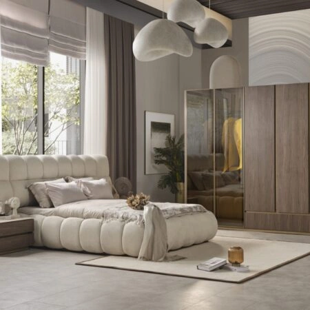 Artekko Ropera Εκρού Τριθέσιος Καναπές με Μπουκλέ Ύφασμα (210x90x70)cm