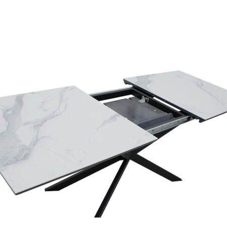 Τραπέζι επεκτεινόμενο Palan sintered stone σε όψη μαρμάρου – μαύρο μέταλλο 160-200x80x77εκ
