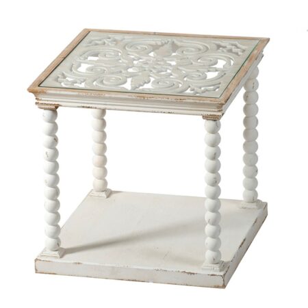 Τραπεζάκι βοηθητικό ξύλινο με σκαλιστό καπάκι και γυαλί (61x61x61)cm
