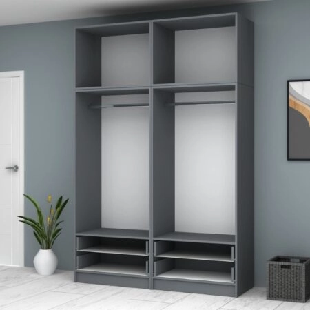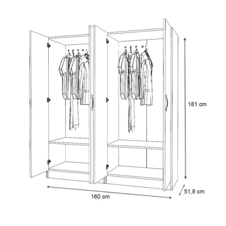 Ντουλάπα ρούχων Ricardo Megapap τετράφυλλη με πατάρι χρώμα ανθρακί 160×51,8×240εκ.