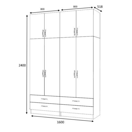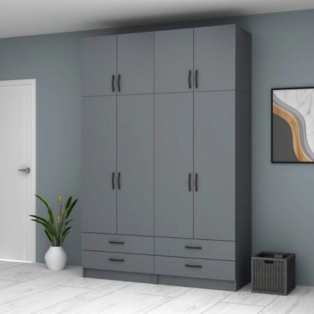 Ντουλάπα ρούχων Ricardo Megapap τετράφυλλη με πατάρι χρώμα ανθρακί 160×61,8×240εκ. Εάν ψάχνετε μια μεγάλη ντουλάπα για να τακτοποιήσετε όλα σας τα ρούχα και αξεσουάρ η ντουλάπα Ricardo…