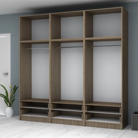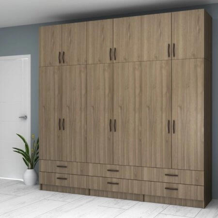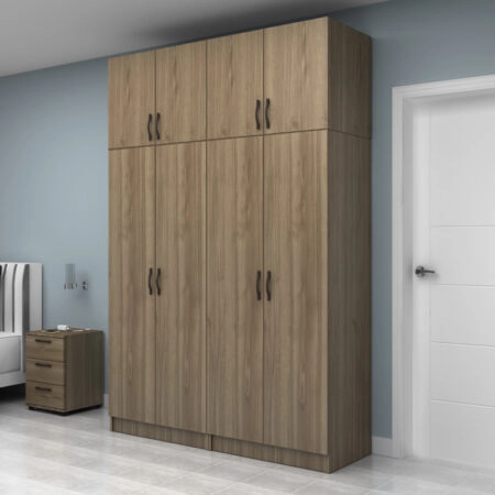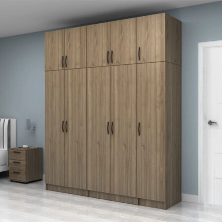Ντουλάπα ρούχων Ricardo Megapap εξάφυλλη με πατάρι χρώμα καρυδί 240×51,8×240εκ.