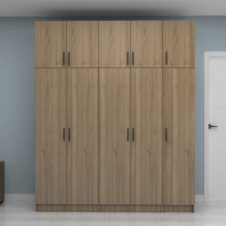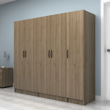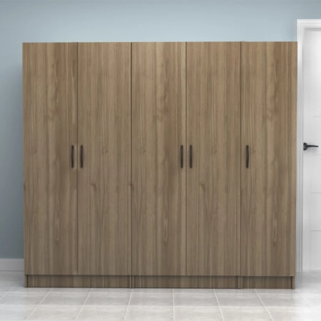 Ντουλάπα ρούχων Vivian Megapap πεντάφυλλη με πατάρι χρώμα καρυδί 200×51,8×240εκ.