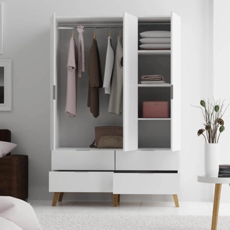 Ντουλάπα Neptune Τρίφυλλη Λευκό-Σονόμα 132x55x197cm