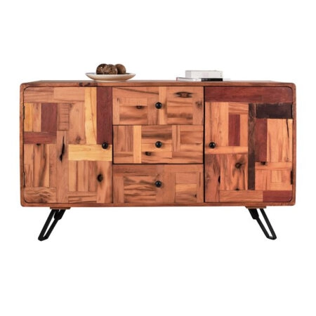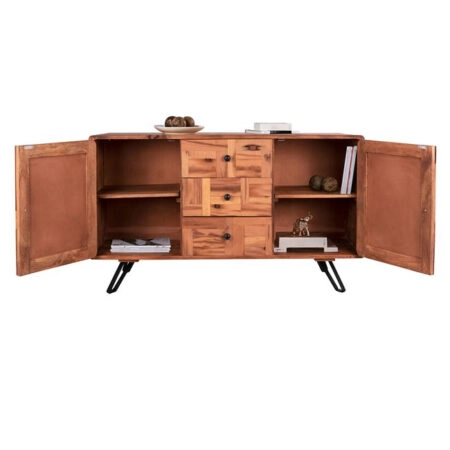 ΜΠΟΥΦΕΣ ΜΕ 3 ΝΤΟΥΛΑΠΙΑ ALICIA HM8475.21 ΜΑΣΙΦ ΞΥΛΟ ΑΚΑΚΙΑΣ-ΜΕΤΑΛΛΟ 148x44x88Υεκ.