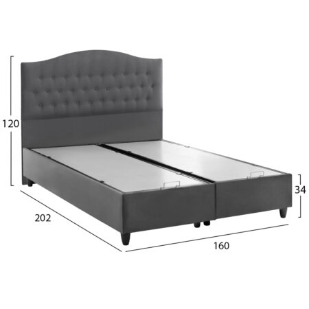 ΚΡΕΒΑΤΙ HM627.20 SOLEDAD, ΜΕ ΑΠΟΘΗΚΕΥΤΙΚΟ,ΓΚΡΙ ΥΦΑΣΜΑ, 160×200 εκ.