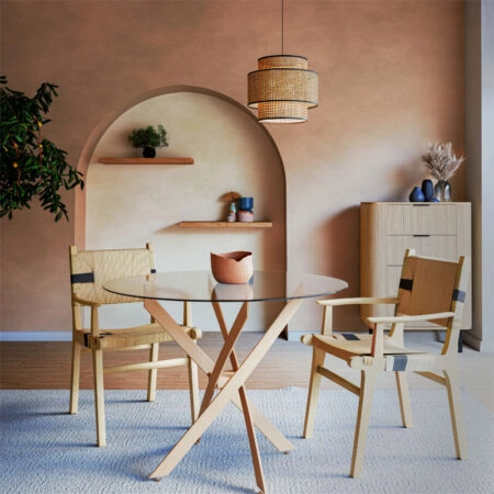 Πολυθρόνα Olivier ξύλο οξιάς φυσικό-έδρα φυσικό σχοινί 62x60x85εκ