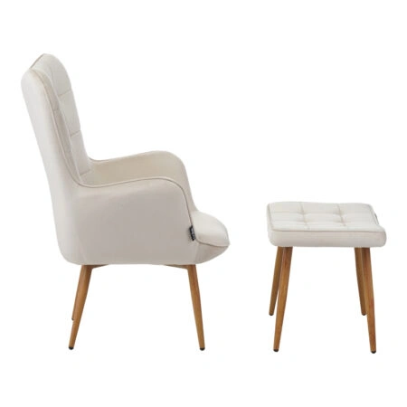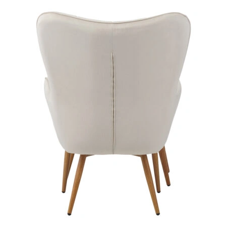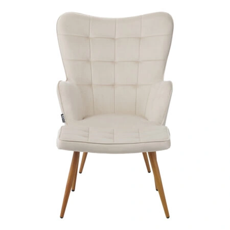 Πολυθρόνα Maddison με υποπόδιο-μαξιλάρι κρεμ βελούδο-πόδι φυσικό 68x72x98εκ