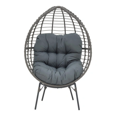 Πολυθρόνα Nestie wicker rattan γκρι-μεταλλικό γκρι πόδι-γκρι μαξιλάρι 102x80x155εκ
