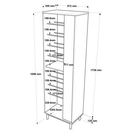 Παπουτσοθήκη-ντουλάπα SANTE 21 ζευγών σε antique ανθρακί 60x37x183εκ