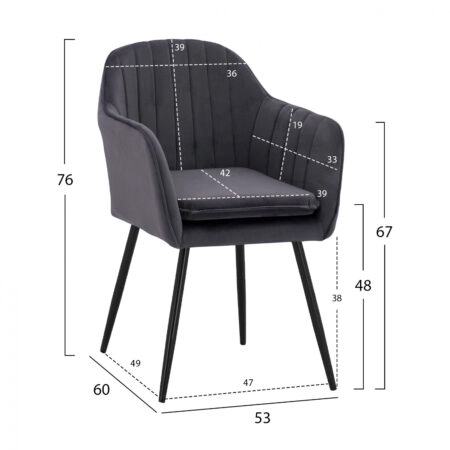 ΠΟΛΥΘΡΟΝΑΚΙ SAWYER ΒΕΛΟΥΔΟ ΓΚΡΙ ΜΕ ΜΑΥΡΑ ΠΟΔΙΑ HM8523.11 53x60x76Y εκ.