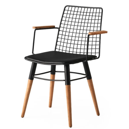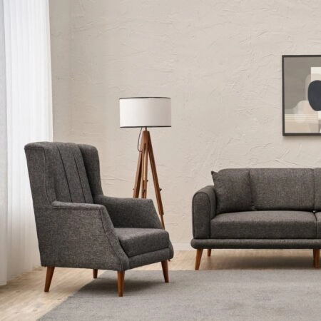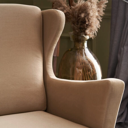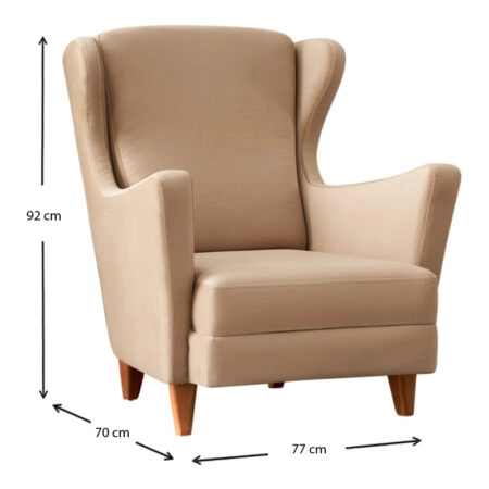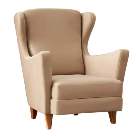 Πολυθρόνα – καρέκλα με καπιτονέ ύφασμα και ξύλινο σκελετό