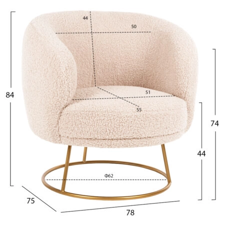 Μπερζέρα – πολυθρόνα Lola βελούδινη χρώμα κρεμ 77x70x92εκ.