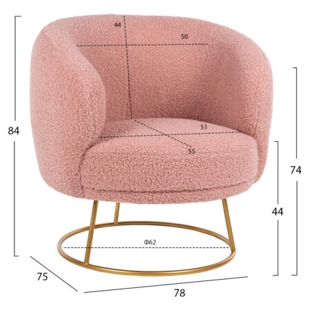 Πολυθρόνα KOLDENREE Σάπιο Μήλο Βελούδο/Μέταλλο/Ξύλο 74x72x91cm