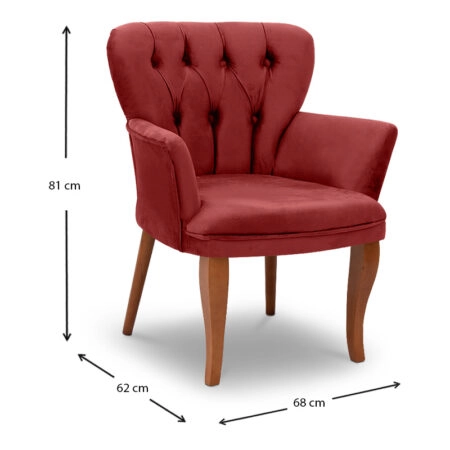 Πολυθρόνα Sebastian Megapap βελούδινη χρώμα βουργουνδί 68x62x81εκ. Τεχνικά χαρακτηριστικά: Χρώμα: βουργουνδί Διαστάσεις: Μήκος 68 x Βάθος 62 x Ύψος 81 εκ. Μήκος καθίσματος: 45 εκ. Βάθος…