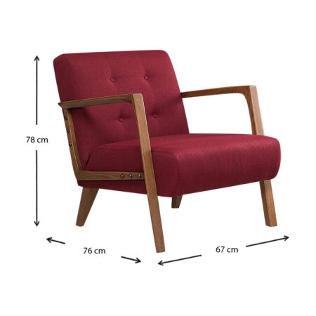 Πολυθρόνα Kemer υφασμάτινη χρώμα βουργουνδί 67x76x78εκ.