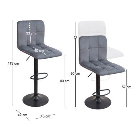Σκαμπό μπαρ Carmelo Megapap με ρυθμιζόμενο ύψος βελούδο γκρι – βάση μαύρο ματ 45x42x90/113εκ.