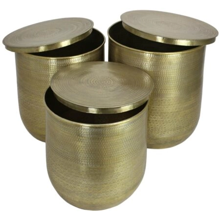 Τραπεζάκι-Κασπώ Μέταλλο Χρυσό 59x59x46cm Σετ 3Τμχ