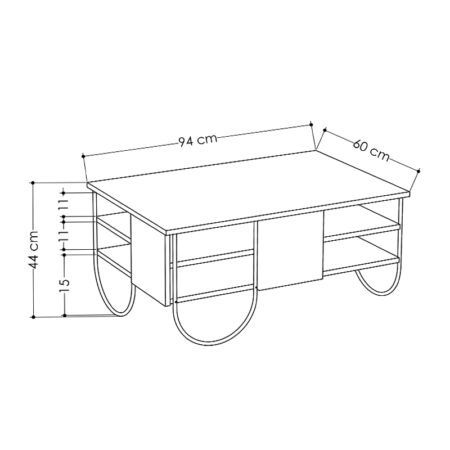 Τραπεζάκι σαλονιού Fiona μεταλλικό – μελαμίνης χρώμα καρυδί 90x55x43εκ.