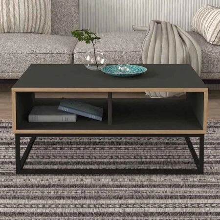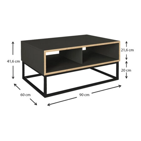 Τραπεζάκι σαλονιού Modena από μελαμίνη χρώμα ανθρακί 90x60x41,6εκ.