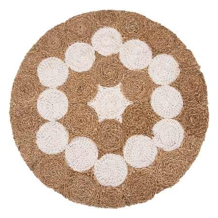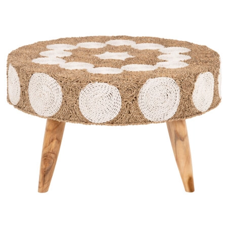 ΤΡΑΠΕΖΙ ΣΑΛΟΝΙΟΥ HM7825 ΞΥΛΟ ΤΕΑΚ ΚΑΙ SEAGRASS ΣΕ ΦΥΣΙΚΟ & ΛΕΥΚΟ Φ81×45Υεκ.