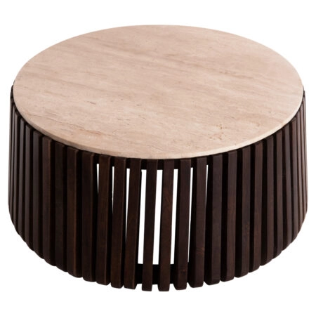 ΤΡΑΠΕΖΙ ΣΑΛΟΝΙΟΥ KREST HM9712 ΜΑΣΙΦ ΞΥΛΟ ΑΚΑΚΙΑΣ ΣΕ ΚΑΦΕ-ΤΡΑΒΕΡΤΙΝA Φ90×40Υεκ.