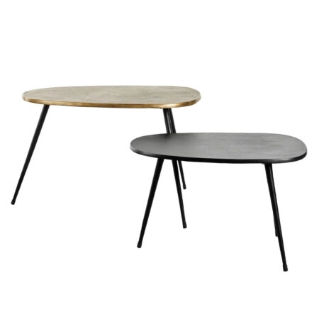 CURVE COFFEE TABLE SET 2ΤΕΜ ΜΑΥΡΟ BRASS 70x49xH47cm