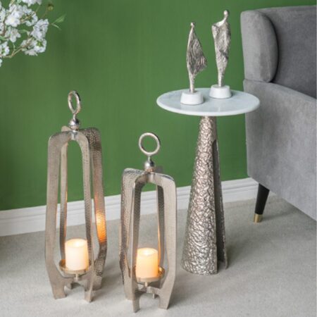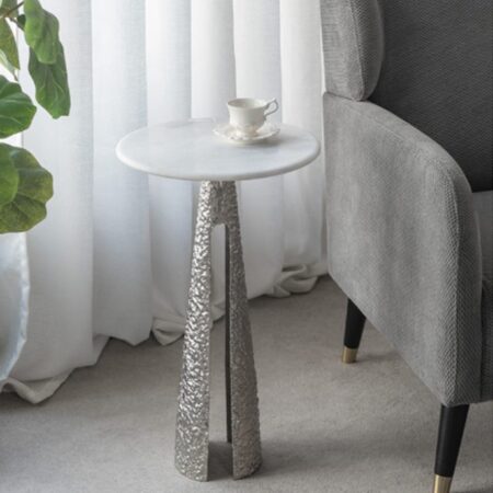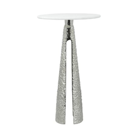 Artekko Zyla Βοηθητικό Τραπέζι Μέταλλο Μάρμαρο Λευκό Ασημί (35x35x60)cm