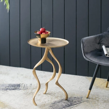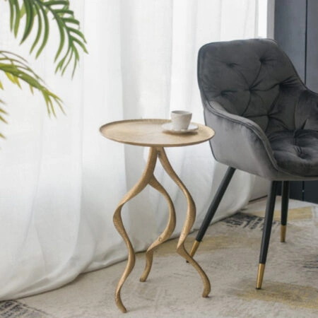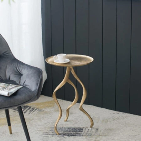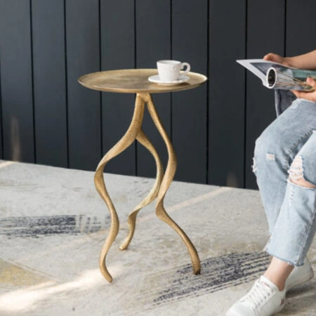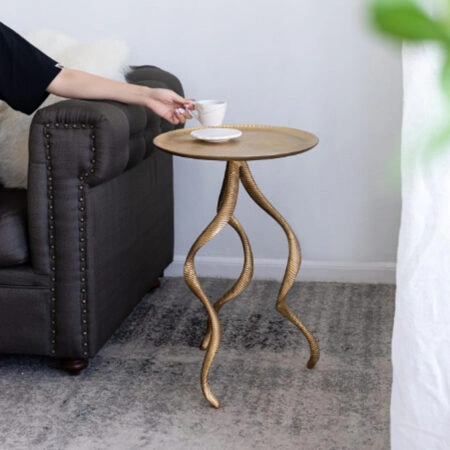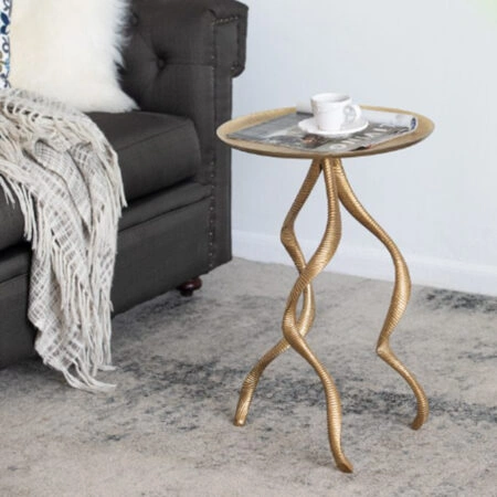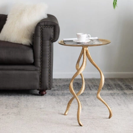 Artekko Zyla Βοηθητικό Τραπέζι Μέταλλο Μάρμαρο Χρυσό Μαύρο (30.5×30.5×59.7)cm