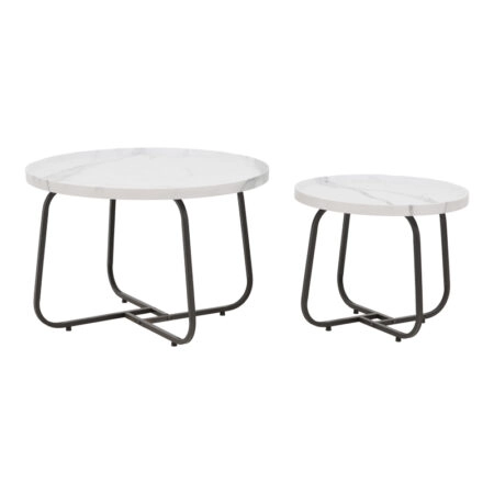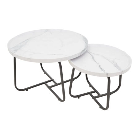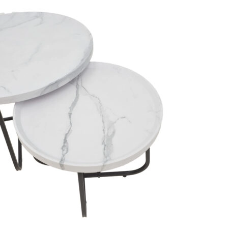 Tραπέζια σαλονιού Crismory σετ 2τεμ MDF σε απόχρωση λευκό μαρμάρου και μαύρα μεταλλικά πόδια