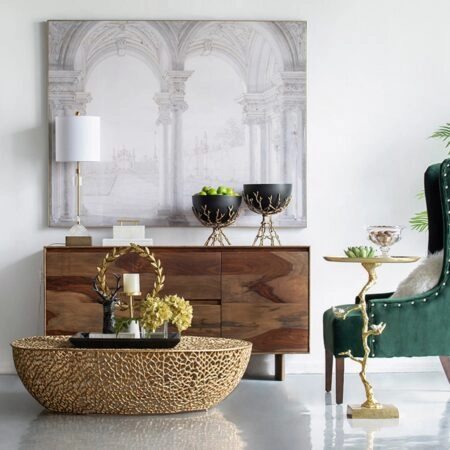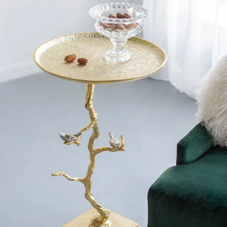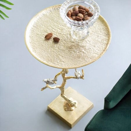 ΒΟΗΘΗΤΙΚΟ ΤΡΑΠΕΖΑΚΙ KAPPUR HM9726 ΞΥΛΟ MANGO ΣΕ ΚΑΡΥΔΙ-ΜΕΤΑΛΛΟ ΧΡΥΣΟ Φ38×62Υεκ