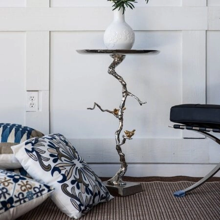Artekko Zyla Βοηθητικό Τραπέζι Μέταλλο Μάρμαρο Λευκό Ασημί (40x40x60)cm