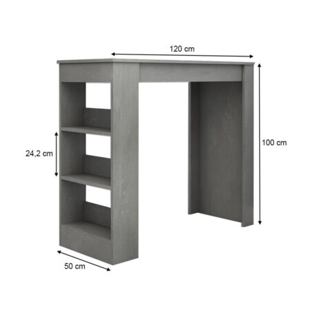 Τραπέζι μπαρ Deep Megapap χρώμα γκρι σκυροδέματος 120x50x100εκ. Τεχνικά χαρακτηριστικά: Χρώμα: γκρι σκυροδέματος Διαστάσεις: Μήκος 120 x Βάθος 50 x Ύψος 100 εκ. Πάχος μελαμίνης: 18mm. Διαθέτει ράφια στη…