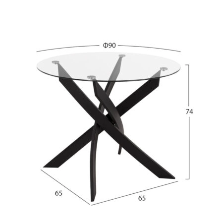 Τραπέζι KATLA Μαύρο/Διάφανο/Χρώμιο Γυαλί/Μέταλλο 90x90x74cm