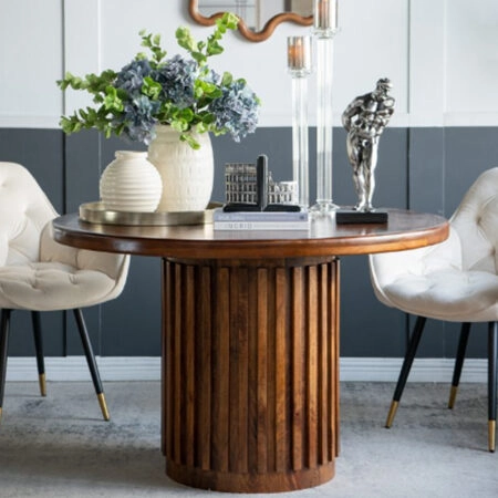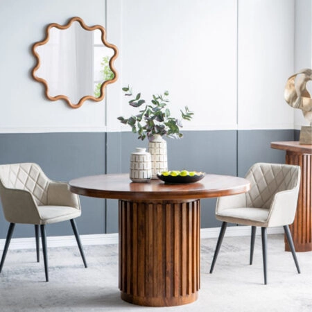 Τραπέζι KATLA Διάφανο/Φυσικό Γυαλί/Ξύλο 120x120x75cm