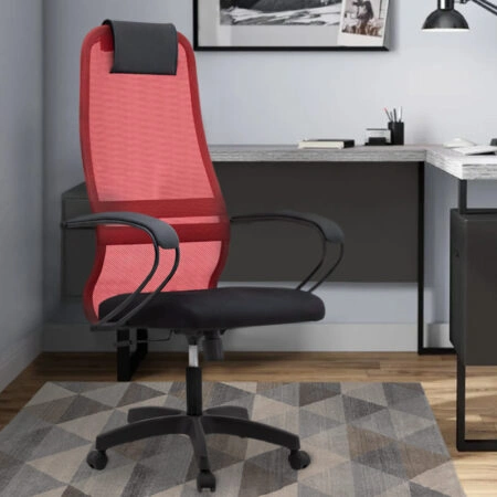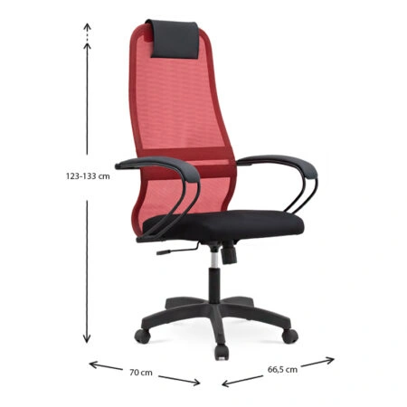 Καρέκλα γραφείου Prince με ύφασμα Mesh χρώμα κόκκινο – μαύρο 66,5x70x123/133εκ.