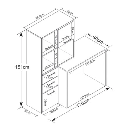 Γραφείο μελαμίνης Aurelio Megapap χρώμα ανθρακί – λευκό γκρι 170×35/60×76/151εκ. Τεχνικά χαρακτηριστικά: Χρώμα: ανθρακί – λευκό γκρι Διαστάσεις: Μήκος 170 x Βάθος 60 – 76…