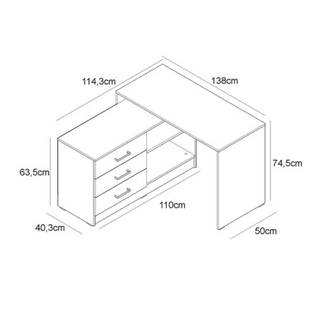 Γραφείο μελαμίνης Keith γωνιακό αναστρέψιμο χρώμα λευκό 138x50x74,5εκ.
