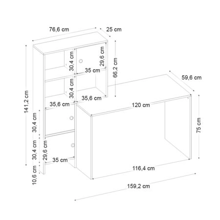 Γραφείο-Βιβλιοθήκη SIROS Λευκό/Καρυδί Μοριοσανίδα/Μελαμίνη 120x60x74/148cm