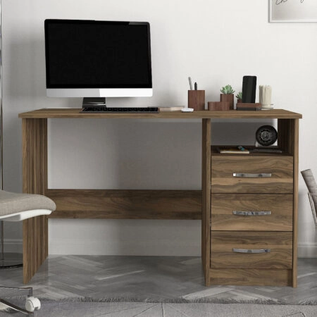 Γραφείο εργασίας Eldoris Megapap χρώμα καρυδί 120x60x75εκ. Τεχνικά χαρακτηριστικά: Χρώμα: καρυδί Διαστάσεις: Μήκος 120 x Βάθος 60 x Ύψος 75 εκ. Διαθέτει τρία συρτάρια και ένα ράφι. Πάχος μελαμίνης:…