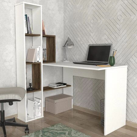 Γραφείο-Βιβλιοθήκη PERCY Λευκό/Καρυδί Μοριοσανίδα/Μελαμίνη 120x90x74/150cm