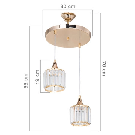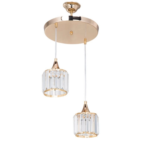 Φωτιστικό οροφής δίφωτο PWL-1025 Ε27 χρυσό-γυαλί Φ30×70εκ