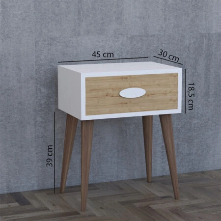 Κομοδίνο Hank λευκό-καρυδί 45x30x60εκ
