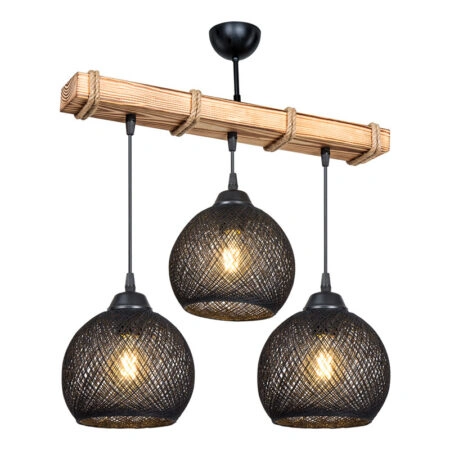 Φωτιστικό οροφής τρίφωτο Fiona Ε27 μαύρο-φυσικό 50x20x63εκ